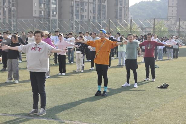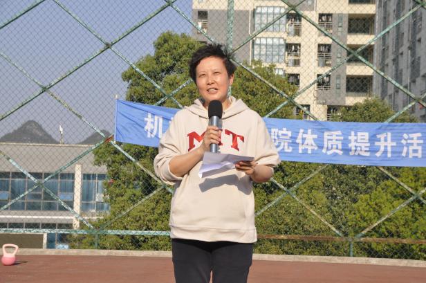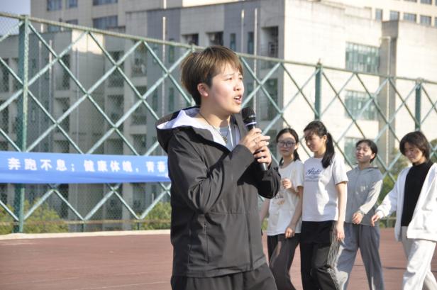 董蔚然宣布体质提升工作小组成员名单,强调体育锻炼的重要性。体育学院唐瑞珠老师代表体质提升组发言,鼓励大家按照体质提升指导方案按时参加体育锻炼。随后,在学生代表李亨丞的带领下,同学们进行集体宣誓。跑步开始前,唐瑞珠老师带领师生们一起做热身运动,在跑步环节,男女分组依次起跑,教师也参与其中,学院师生在操场上挥洒汗水,营造了良好的运动氛围。