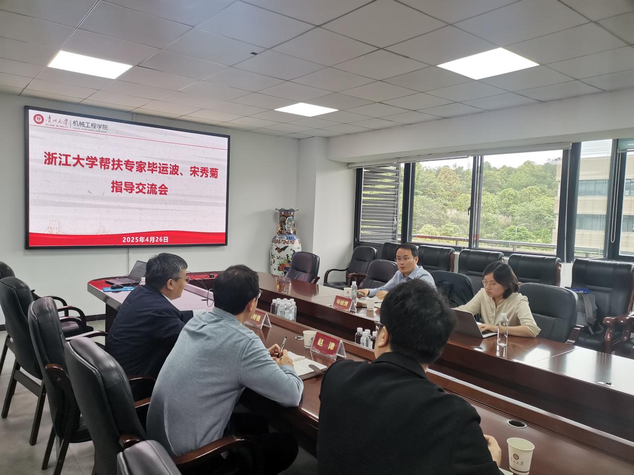 为深入贯彻落实省委省政府关于深化东西部协作和新时代高校对口帮扶工作的重要指示精神,2025年4月26日下午,浙江大学ok138太阳集团中国官方网站对口帮扶专家毕运波教授、宋秀菊研究员一行赴ok138太阳集团中国官方网站开展指导交流。活动由ok138太阳集团中国官方网站党委书记赵津主持,浙江大学帮扶专家组组长、国家级人才称号获得者冯毅雄及学院青年教师代表吴家柱、汪希奎、杜昊、漆令飞、陈跃威等10余人参与座谈交流。