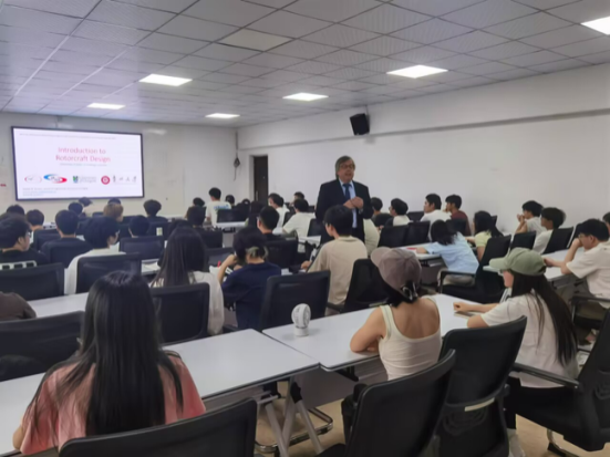 6月30日上午,学院教师代表与Barakos教授就相关学术领域进行了深入交流与探讨。下午,Barakos教授为学院本科生做《旋翼飞行器介绍》讲座。