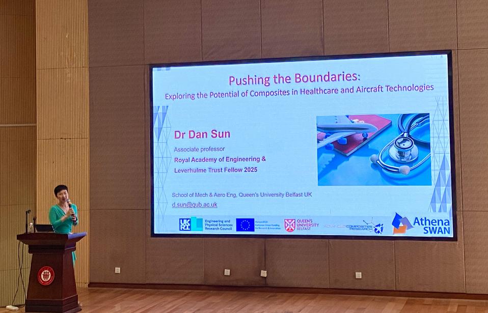 孙丹副教授聚焦先进复合材料的前沿应用。在医疗方面,她开发的智能复合植入材料不仅能替代受损骨骼,更能实现精准药物释放和可控杀菌,为复杂骨病治疗提供全新解决方案;在航空领域,其团队针对新一代可回收飞机材料,创新性地优化了加工工艺,显著提升制造效率与环保性能。两项研究均体现了复合材料技术对产业升级和人类健康的积极推动作用。