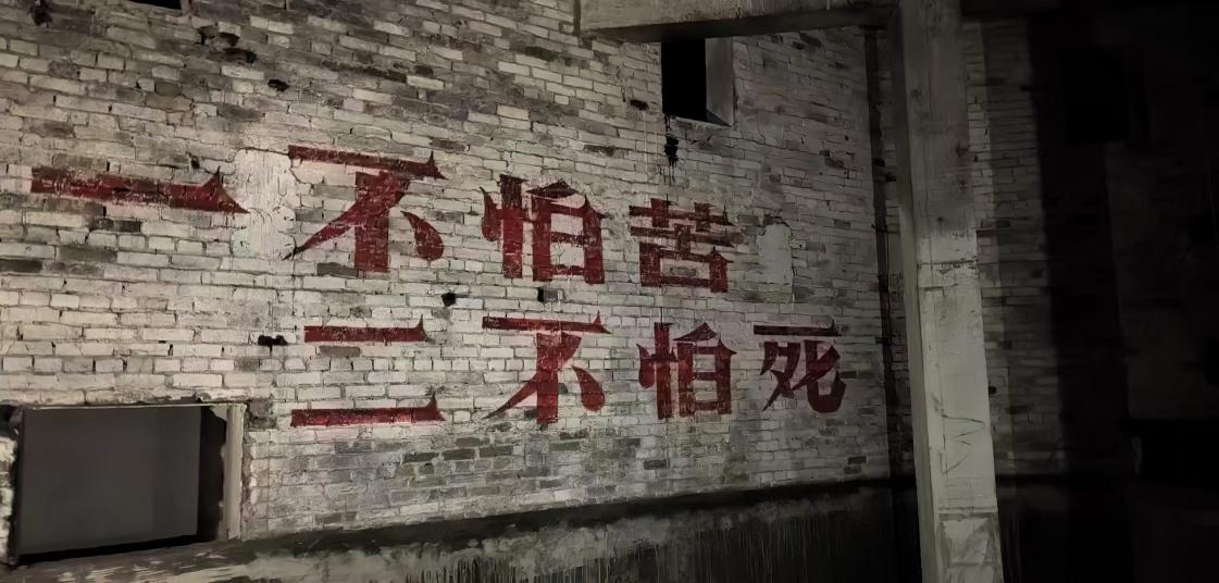 而今处于新时代的我们,已不见先辈们洞中灯火下挥汗如雨、艰辛劳作的身影,但洞壁上一行行斑驳却遒劲的红色标语,却依旧如炬火般灼亮,似号角般回响,在岁月深处默默诉说着那段滚烫的过往。