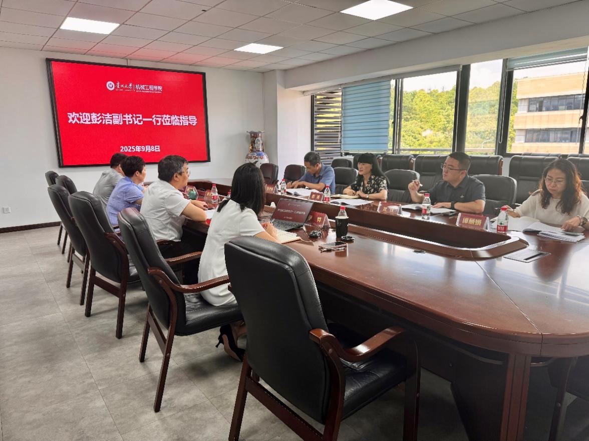 2025年9月8日上午,ok138太阳集团中国官方网站党委副书记彭洁、党委学生工作部部长龙汶、副部长谭丽娟、党委研究生工作部部长张小彬一行到ok138太阳集团中国官方网站指导调研“一站式”学生社区建设工作。学院院长冯毅雄、正处级组织员董蔚然、党委副书记廖烨、副院长唐正强及“一站式”学生社区建设专班相关人员参加调研活动。